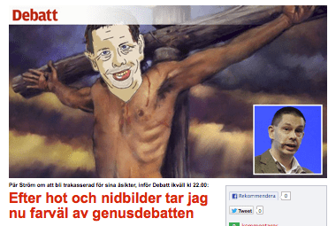 ”Eftersom dessa fem personer inte okritiskt höll med om allt som feminister i panelen tycker och till råga på allt en av dem filmade samtalet på sin mobiltelefon så fick ett antal feminister för sig att demokrati innebär att de i organiserad form ägnar sig åt rena förföljelser mot en politiskt engagerad gymnasielärare som fanns i sällskapet. Inom kort hängdes läraren ut semi-offentligt på Sofia C:s sociala nätverk (Facebookgruppp med 6000+ medlemmar, minst en moderator var med i ovan nämnda panel) som måltavla för organiserade trakasserier riktade mot hennes arbetsplats.”